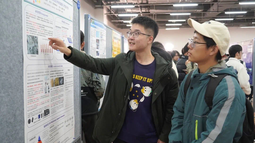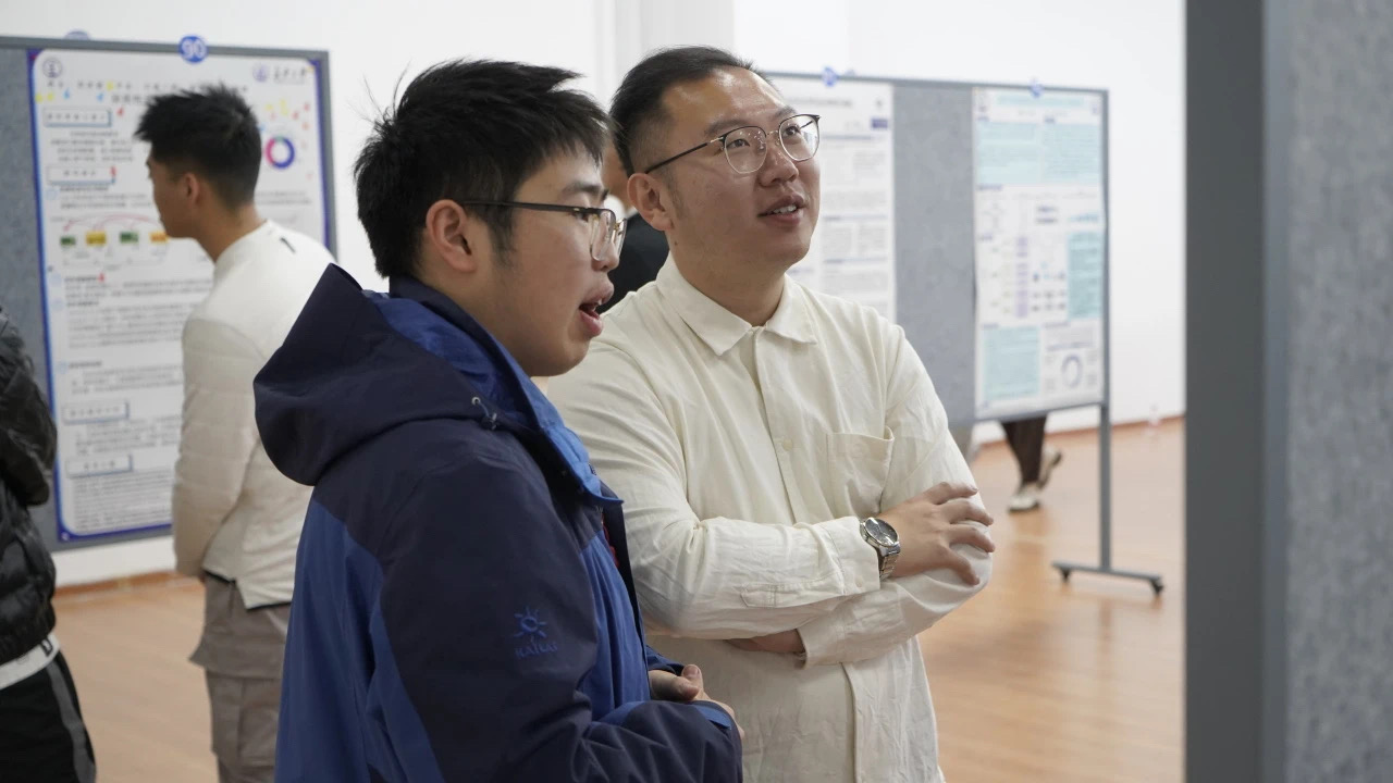 随后,海报作者现场分别从论文研究背景意义、国内外研究现状、研究方法及已有成果等方面进行集中汇报展示,评审老师根据海报内容和设计思路进行提问,对海报亮点给予肯定,并指出其不足之处。学院其他年级同学分批次集中观展,担任大众评审,借此机会互相交流探讨,现场气氛热烈。