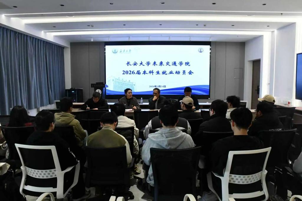 在北校区弘毅大厦未来大师堂召开2026届本科毕业生就业促进座谈会。学院院长Fwa Tien Fang,副院长汤颖颖、杨旭出席会议,学院2026届毕业生代表参会,会议由学院2026届本科毕业生辅导员曾晓阳主持。