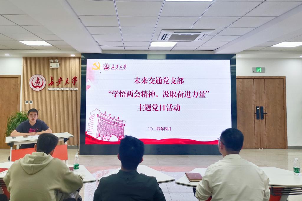 为巩固拓展学习贯彻习近平新时代中国特色社会主义思想主题教育成果,进一步凝聚共识解放思想积极作为,4月8日,未来交通党支部在北校区朝晖园学生社区示范性园区团体辅导室举行“学悟两会精神,汲取奋进力量”主题党日活动。未来交通党支部组织委员刘志兴、支部全体学生党员参与。活动由学生党员季书贤主持。