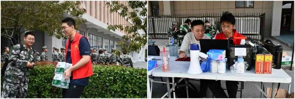 军训期间,学生党员致力于为新生打造最贴心、最周到的服务体验,提前为同学们准备饮用水、藿香正气水以及葡萄糖等必要物资,同时及时掌握同学们的健康状况,认真帮助同学们解决困难,做好新生军训的后勤保障工作,为新生们全身心投入军事训练、和军训期间和谐稳定奠定了坚实的基础。