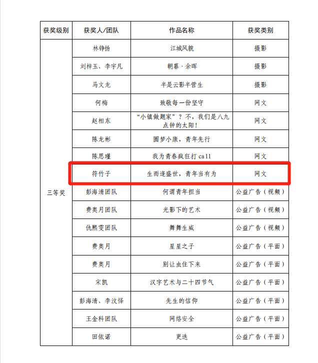”(原“长大工科试验班”)荣获“优秀校园新媒体团队建设奖”,院学生事务部副主任刘志兴网络文章《日升月落,愿你青春地生活!》、工作案例《聚焦“三度三引领”网络思政“微阵地”激发铸魂育人“大能量”》荣获“网络教育优秀作品”,学院2020级本科生符竹子创作网文《生而逢盛世,青年当有为》荣获“网络文化节”作品三等奖。