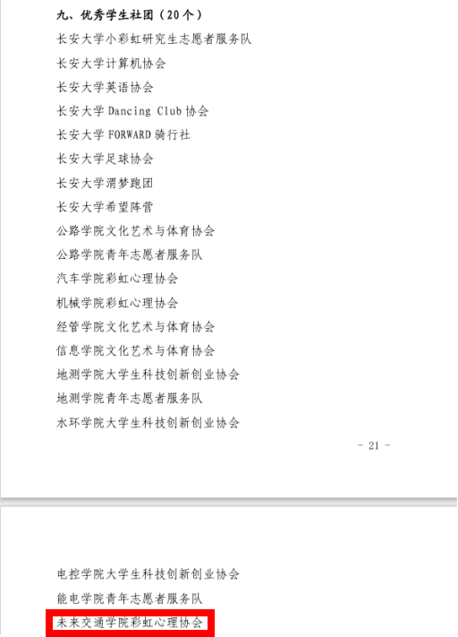 彩虹心理协会荣获2023-2024学年“优秀学生社团”荣誉称号。