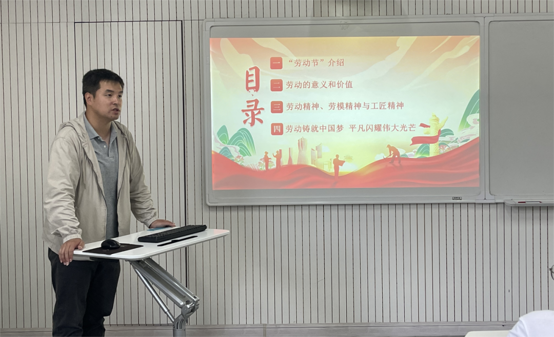 曾晓阳以劳动节的背景介绍为切入点,强调了劳动的意义和价值,劳动既是生存的基础,更是一种人生记录,一种自我实现的方式。结合汉王科技股份有限公司高级工程师彭菲、荆州文物保护中心研究馆员吴顺清和特变电工股份有限公司新疆变压器厂特级技师张国云三个模范人物事例,曾晓阳就新时代大学生如何在劳动中实现自我价值问题与同学们深入交流,详细讲解了劳动精神、劳模精神、工匠精神的内涵和时代价值。习近平总书记强调,光荣属于劳动者,幸福属于劳动者。当代青年正值朝气蓬勃之时,应当以劳动作为践行人生的不二选择,怀抱梦想又脚踏实地,敢想敢为又善作善成。劳动作为中华民族发展千年的主旋律,是实现个人目标和国家富强的重要途径。