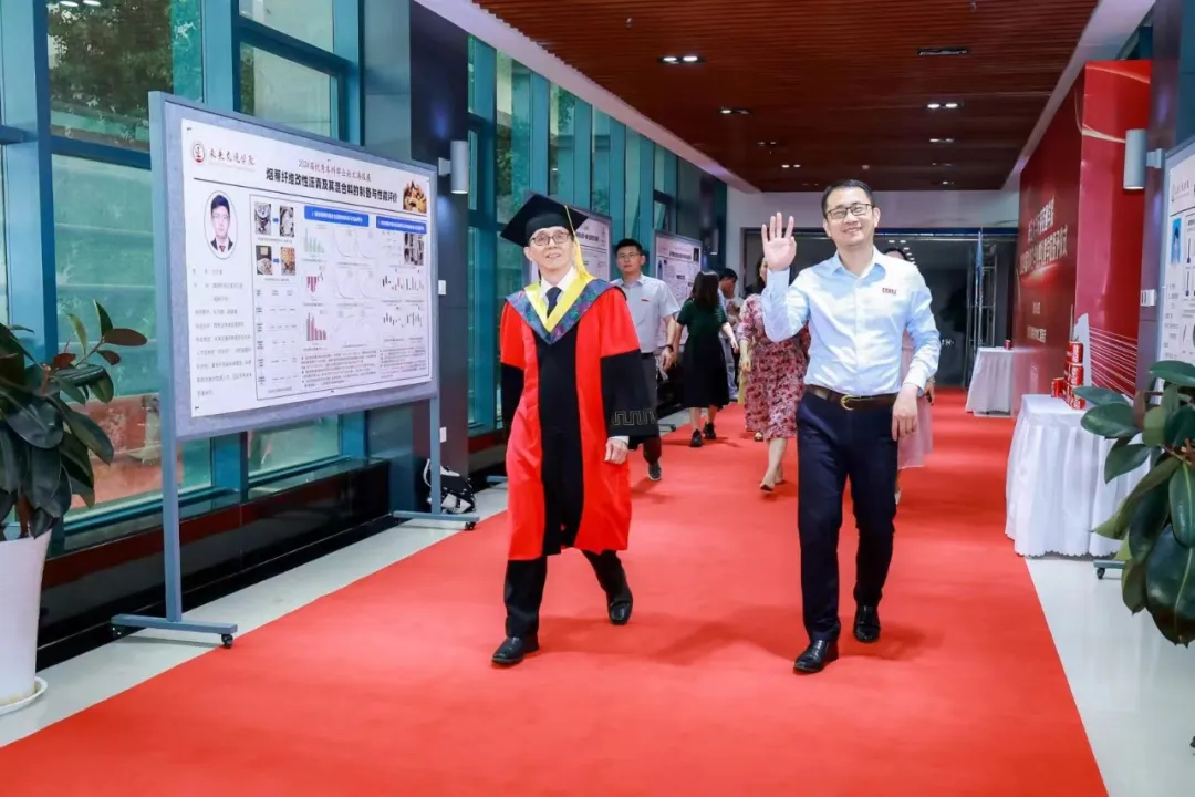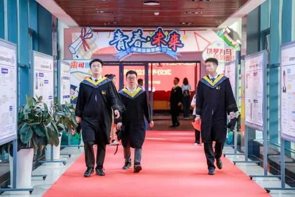 星光洒落大道,映照青春脚步。典礼前,学院为首届毕业生们铺设“星光大道”红毯走秀,以摄影形式定格青春瞬间。毕业生们在签名墙上签下自己的名字,记录四年青春记忆。连廊两旁,陈列学院优秀毕业论文海报,彰显科研风采,寄语未来梦想。