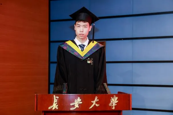 本科毕业生代表纪裕伟对学校学院的培养、老师的教诲以及亲友家人的支持表示感谢,希望毕业生们怀揣梦想,乘风破浪,努力成为可堪大用、能担重任的社会栋梁。