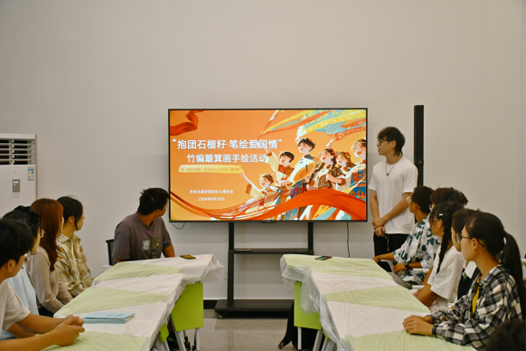 王桂文以“凭衣识族”的小游戏拉开了活动序幕。参与活动的同学们都积极举手回答问题,以获得率先选择民族竹编簸箕画的机会。过程中,同学们对各民族的风情有了进一步的了解。簸箕画源于布依族,在民族文化发展中,他们使簸箕不仅仅是一样生活用品,更是一件充满民族文化韵味的艺术品。