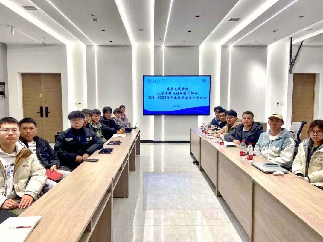 大学生科技创新创业协会于北校区弘毅大厦未来大师堂召开2024-2025学年第二学期第一次例会,院团委书记曾晓阳出席会议,院科协主席团及全体负责人参会,会议由院科协主席余文贵主持。