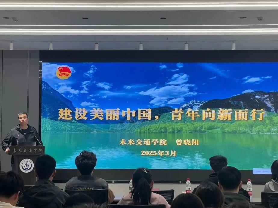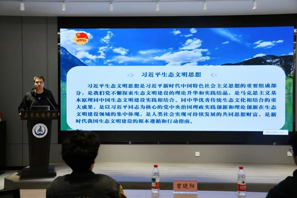 组织开展“建设美丽中国,青年向新而行”主题教育团课。本次主题团课由院团委书记曾晓阳主讲,院第四期青马班全体成员、院团学组织和学生社团全体成员参会,会议由院青马班班长童子豪主持。