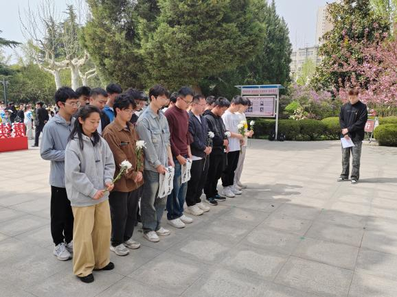 研究生会主席纪裕伟主持,全体师生肃立默哀,向为民族独立、人民解放献出生命的英烈致以崇高敬意。随后,老师及学生代表缓步上前敬献挽联,寄托对先烈的深切追思。