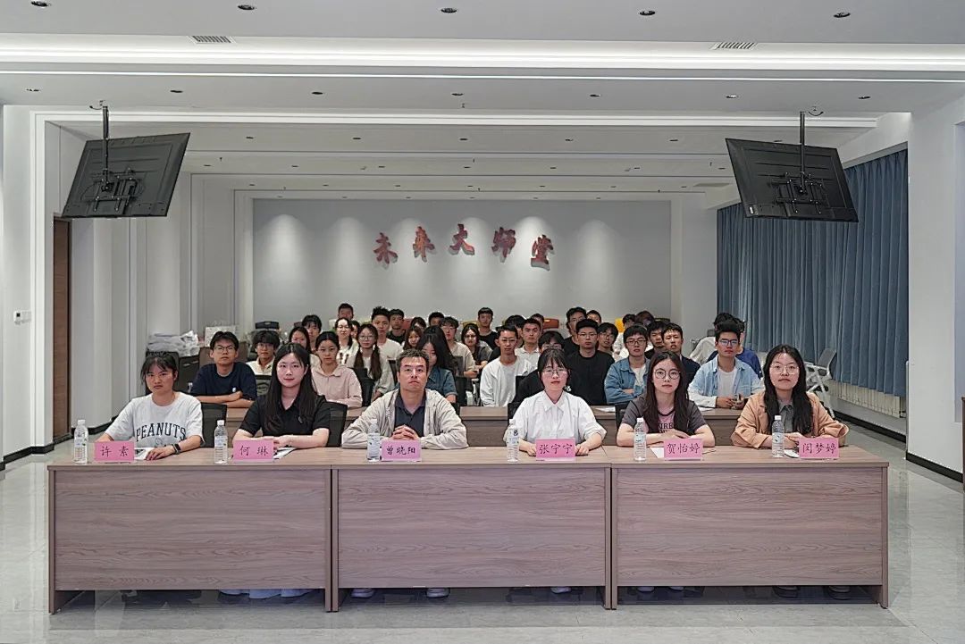 青马班组织开展“砥砺奋进新时代,伟大精神辈辈传”宣讲活动。本次宣讲活动特邀研究生支教团闵梦婷、贺怡婷、张宁宁、许素、何琳担任宣讲嘉宾,院团委书记曾晓阳和学院第四期青马班全体学员参加活动,活动由院团学工作中心青马部志愿者王默涵主持。