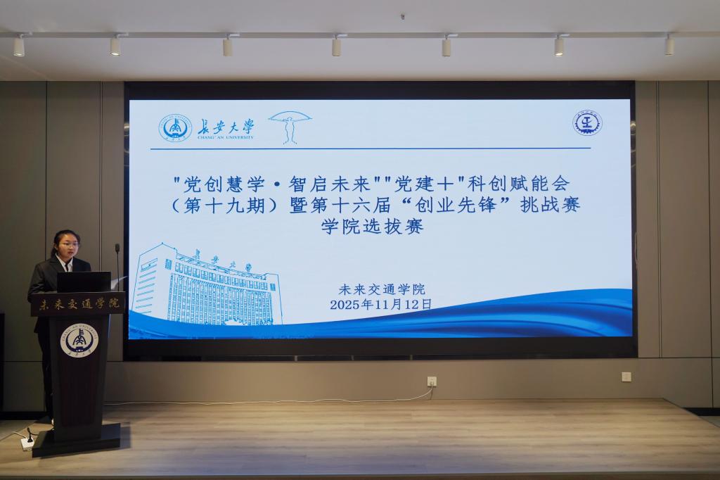 于北校区弘毅大厦未来大师堂举办“党创慧学·智启未来”科创赋能会暨第十六届“创业先锋”挑战赛学院选拔赛。本次比赛特邀学院创新创业导师田顺,学院交通工程专业教师杨钊和学院研科协主席团成员李郅担任评委嘉宾,各参赛队伍,学院2024级、2025级部分学生参加此次比赛,比赛由院科协创挑部志愿者王帛雨主持。