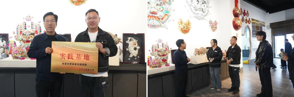 刘志兴代表奈飞工厂 与胡新明进行“实践基地”授牌仪式,促进了中华优秀传统文化融入高校心育和美育实践的双向联动。