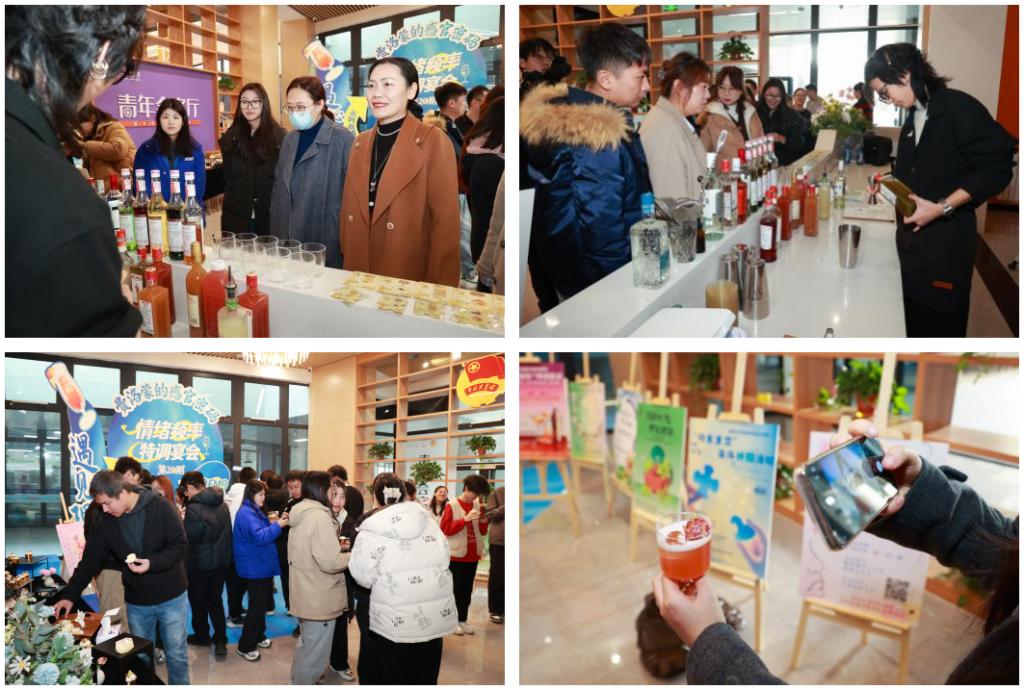 在特调展示与品尝环节,参与师生依循当下的情绪状态,讲述内心故事,寻找情感表达窗口。调酒师团队将心声独白转化为创作灵感,将青瓜、斑斓、桃子、百香果、绿茶等风味融入特调口味框架,让每一杯饮品都承载着专属心意,暖心帮助其情绪释放。