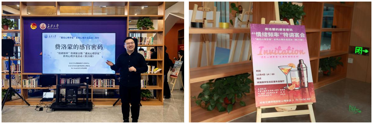 “情绪频率”特调宴会暨“遇见心理学家”系列心理沙龙活动(第20期)之“费洛蒙的感官密码”在北校区鸿渐园“一站式”学生社区青年会客厅举行。奈飞工厂