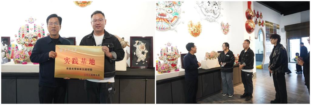 刘志兴代表奈飞工厂 与胡新明进行“实践基地”授牌仪式,促进了中华优秀传统文化融入高校心育和美育实践的双向联动。