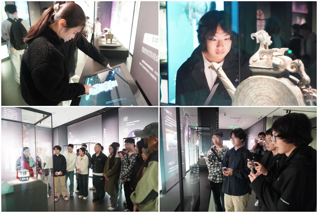 团队走进宝鸡青铜器博物院,讲解员向大家详细讲解当地周秦时期历史文化,精美的青铜器让同学们体验到了一场视觉盛宴,从泠泠作响的编钟,到精致小巧的发髻,再到大气磅礴的镇馆之宝——何尊,每一道纹理都藏着先民的生活密码,每一个古字都承载着早期文明的智慧光芒。同学们不仅知晓了青铜器的文化脉络,更在触摸历史温度的过程中,直观感受中华文明的源远流长与博大精深。