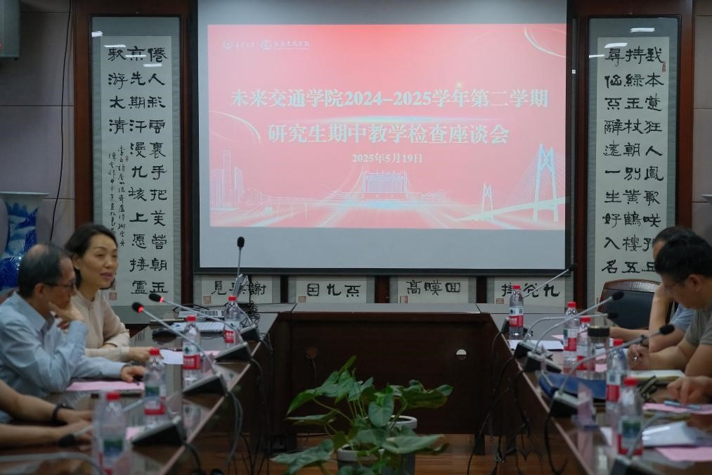 于2025年5月19日在南校区北院交流中心第五会议室召开研究生期中教学检查座谈会。学院院长Fwa Tien Fang、副院长汤颖颖、副院长杨旭、学生事务部主任、教师代表、研究生主管及2024级和2025级(即2021级本科生推免生)研究生代表参加此次座谈会,副院长崔华主持会议。