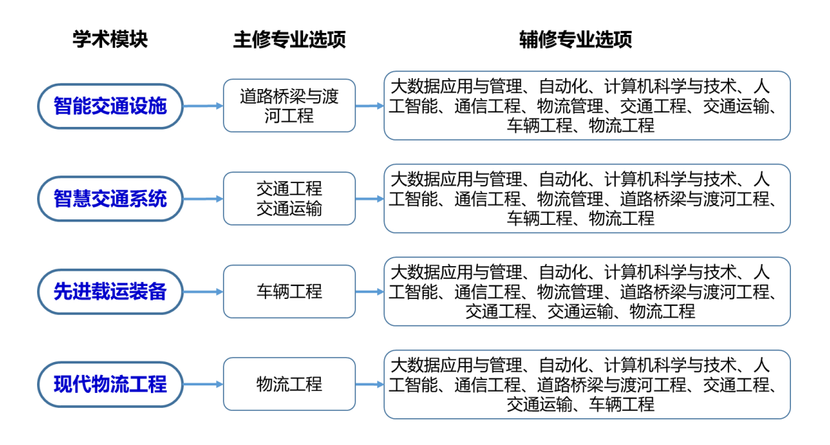 学术模块和对应的主辅修专业如下: